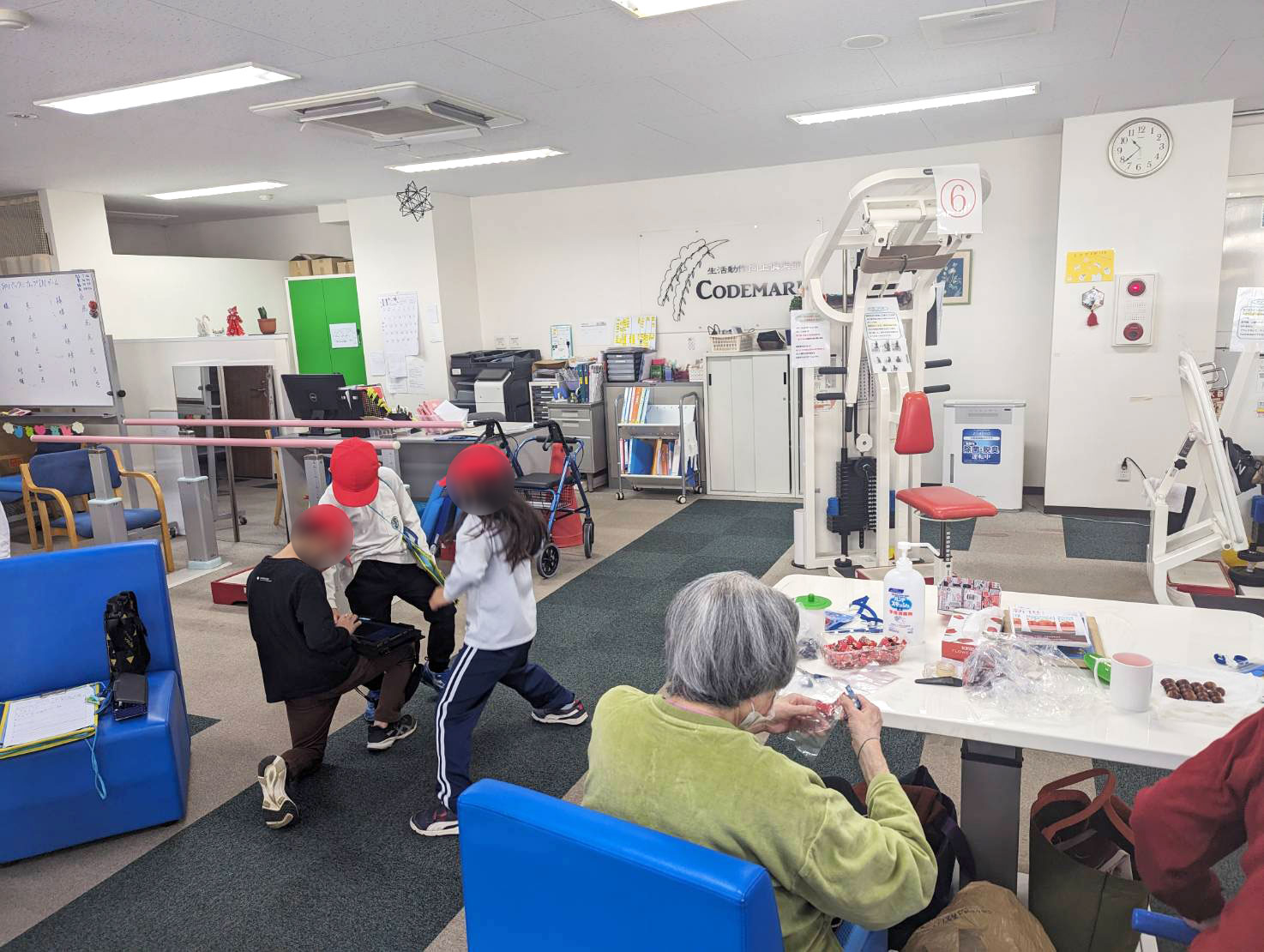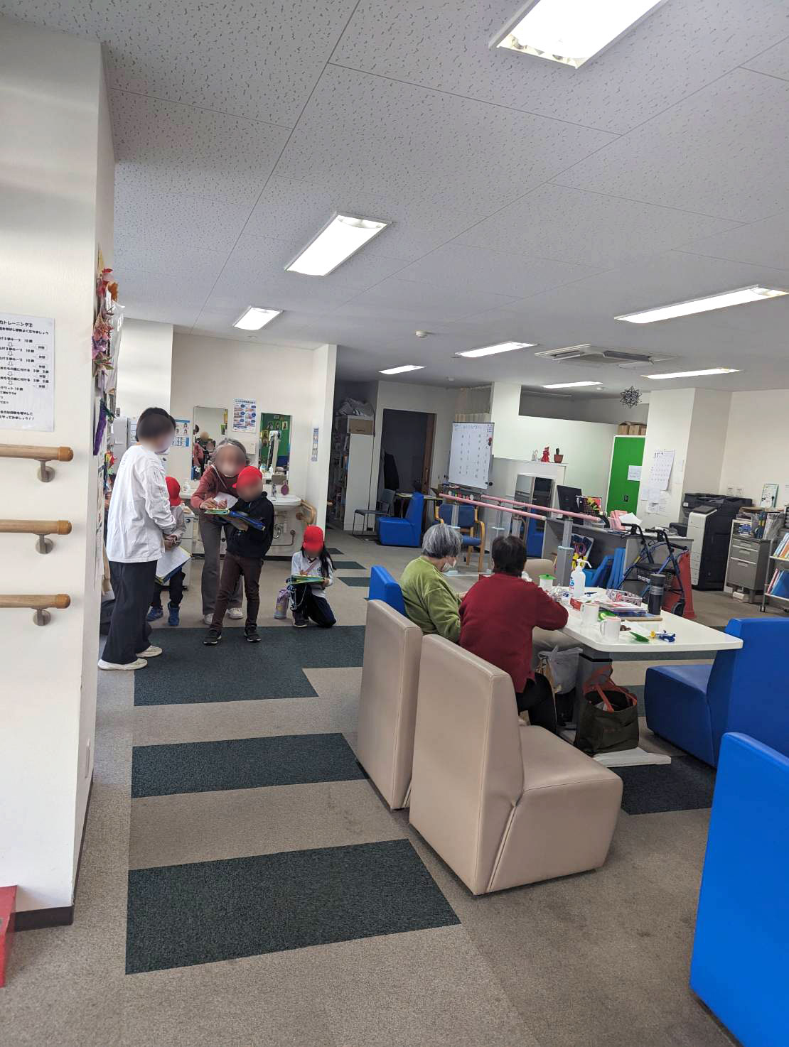 22日水曜日に妙法寺小学校の2年生が生活科「行ってみよう 町たんけん」の学習で見学に来ました。 コデマリの内容をインタビューしたりマシンに興味深々の子供たち。 実際にマシンに乗るとさらに目が輝いていました。 子供たちのパワーに利用者さんも元気にをもらい、みんなの笑顔がとても素敵な日でした。