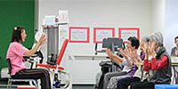 お口の体操や早口言葉で楽しく声を出していただきます。